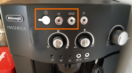 elle a développé un nouveau problème : Les boutons poussoirs pour allumer/éteindre et tirer le café - voir photo - ne répondent plus de manière fiable. Il faut parfois appuyer x fois sur la touche jusqu'à ce que la machine s'allume ou pour que le café soit tiré. Ce sont bien sûr les boutons dont vous avez le plus souvent besoin !