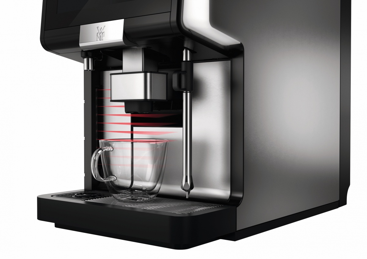 Le nouveau "WMF Cup Sensor" pour les machines gastro entièrement automatiques WMF 5000 S+ et WMF 1500 S+ détecte automatiquement les tasses, mugs ou verres placés sur le plateau d'égouttage. La machine déplace ensuite la sortie automatique dans la bonne position. En outre, pour certaines boissons telles que l'espresso ou le latte macchiato, la tasse ou le verre utilisé est détecté et la boisson appropriée avec la quantité correcte est présélectionnée. Cela permet d'éviter les erreurs dans la sélection des boissons et aucune boisson n'est servie sans tasse placée.